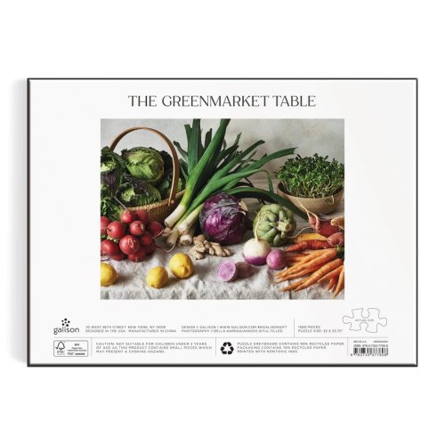 Puzzle predstavuje obraz miestnej produkcie z greenmarketu. Zostavenie tohto puzzle bude náročné, ale chutné! Puzzle je balené v pevnej krabici, na opätovné použitie a skladovanie. Ideálne ako darček. Autor obrázku je Bella Karragiannidis. Puzzle sú vyrobené za použitia významného podielu recyklovaného papiera a ponúkajú špičkovú potlač nezávadnými farbami. Sú opatrené matnou povrchovou úpravou, ktorá zaisťuje za všetkých okolností verné podanie detailov i farieb. Ich zadná strana je potiahnutá hladkým, na dotyk príjemným povrchom, vďaka ktorému sa pri skladovaní rozloženého puzzle netvorí prach. Spolu so starostlivo zabalenými dielikmi nájdete v balení aj letáčik s návodným obrázkom, ktorý spravidla obsahuje ďalšie informácie o tvorcoch a pozadí vzniku diela. Dodávané v mimoriadne pevnej a pútavo spracovanej kartónovej krabičke vyrobenej z recyklovaného kartónu a udržateľne získaných materiálov s certifikáciou FSC®. Hlavné vlastnosti: 1500 precízne vyrezaných dielikov vyrobených s použitím recyklovaných a udržateľne získaných materiálov starostlivo vybraný motív od renomovaných tvorcov a umelcov potlač a prevedenie najvyššej kvality obsahuje návodný obrázok