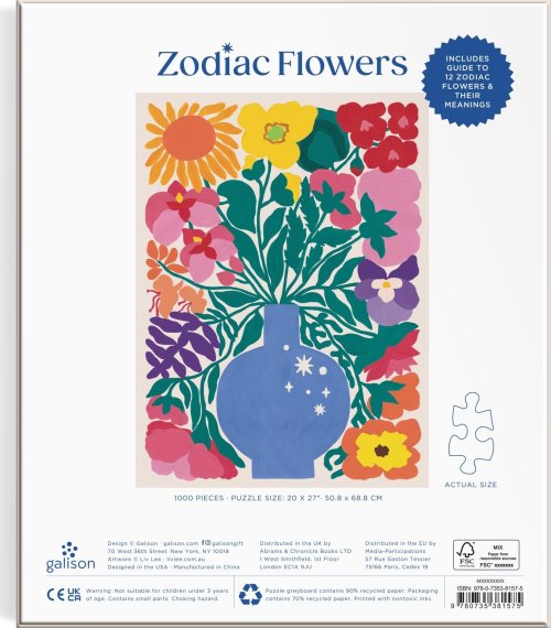 Predstavujeme Vám puzzle so vzorom kvetov zverokruhu, ktoré ilustroval Lev Lee. Puzzle je zabalené v pevnej krabici, ktorá je vhodná na uskladnenie, aby sa žiadny dielik nestratil. Hlavné vlastnosti: obsahuje 1000 dielikov starostlivo vybraný motív od renomovaných tvorcov a umelcov obsahuje návodný obrázok vyrobený s použitím recyklovaných a udržateľne získaných materiálov s certifikáciou FSC tlačené netoxickými atramentmi Značka a certifikát FSC® (Forest Stewardship Council) zaručuje, že drevo, z ktorého nelegálne a pochádza z lesov obhospodarovaných šetrným či prírode blízkym spôsobom, v ktorom sú dodržiavané prísne environmentálne a sociálne požiadavky. Značka FSC® na výrobku znamená, že svojim nákupom pomáhate chrániť lesy a podporujete šetrné, zodpovedné či prírode blízke hospodárenie, vďaka ktorému sú naše lesy stabilnejšie, zdravšie, majú prirodzenú druhovú skladbu a lepšie odolávajú negatívnym následkom klimatických zmien.
