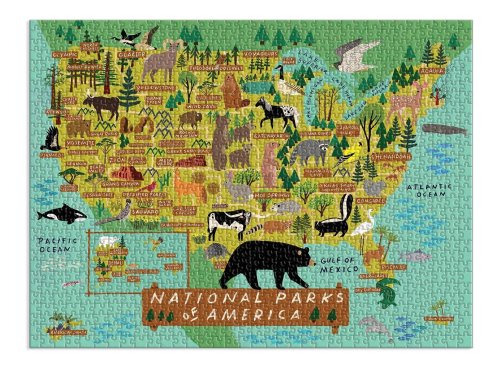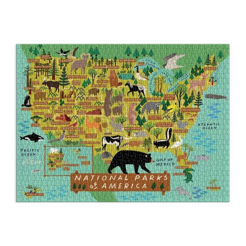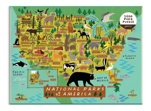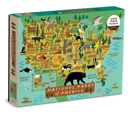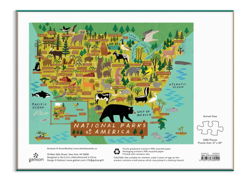 Puzzle Národné parky Ameriky o 1000 dielcoch obsahuje ilustráciu od najpredávanejšej umelkyne Anne Bentley a vykresľuje mapku Spojených štátov amerických spolu s umiestnením veľkých parkov a zvierat v tejto krajine. Puzzle Galison sú balené v pevných škatuliach s matným povrchom pre ľahké použitie aj skladovanie. Ideálne aj ako darček. Hlavné vlastnosti: 1000 dielikovsúčasťou balenia je návodný obrázok rozvíja logické myslenie a motoriku