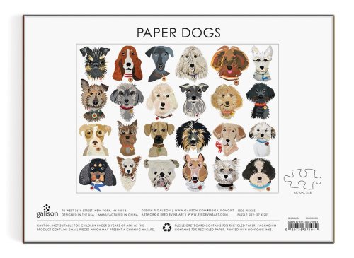 Puzzle obsahuje 24 ručne psích portrétov, takže je to perfektný darček pre puzzle aj milovníkov psov. Puzzle je balené v pevnej krabici, na opätovné použitie a skladovanie. Ideálne ako dá rek. Puzzle sú vyrobené za použitia významného podielu recyklovaného papiera a ponúkajú špičkovú potlač nezávadnými farbami. Sú opatrené matnou povrchovou úpravou, ktorá zaisťuje za všetkých okolností verné podanie detailov i farieb. Ich zadná strana je potiahnutá hladkým, na dotyk príjemným povrchom, vďaka ktorému sa pri skladovaní rozloženého puzzle netvorí prach. Spolu so starostlivo zabalenými dielikmi nájdete v balení aj letáčik s návodným obrázkom, ktorý spravidla obsahuje ďalšie informácie o tvorcoch a pozadí vzniku diela. Dodávané v mimoriadne pevnej a pútavo spracovanej kartónovej krabičke vyrobenej z recyklovaného kartónu a udržateľne získaných materiálov s certifikáciou FSC®. Hlavné vlastnosti: 1000 precízne vyrezaných dielikovvyrobených s použitím recyklovaných a udržateľne získaných materiálovstarostlivo vybraný motív od renomovaných tvorcov a umelcovpotlač a prevedenie najvyššej kvalityobsahuje návodný obrázok