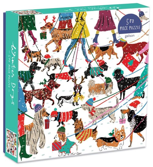 Psy oblečenie do zimných svetrov a čiapok? Čo môže byť slávnostnejšieho a zábavnejšieho než toto 500dielne puzzle. Poskladajte a odhaľte scénu psov a ich pánov v zimnej adventnej atmosfére. Snímka Louise Cunningham. Puzzle je balené v pevných škatuliach s matným povrchom. Hlavné vlastnosti: Obsahuje 500 dielikovPotlačené netoxickými atramentmiPrémiová kvalita puzzleJednotlivé dieliky do seba presne pasujúRozvíja logické myslenie a motoriku