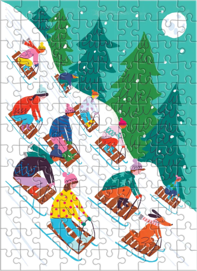 Súčasťou mini balenia je predloha skladaného motívu. Balené v krabičke v tvare zasneženého domčeka s visačkou s motívom puzzle. Rozmer zloženého puzzle cca 15,2 x 21 cm