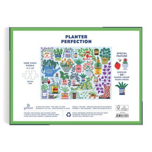 Puzzle s tvarovanými dielikmi zobrazuje výsadbu kvetov do rôznych druhov nádob. Toto puzzle obsahujú aj 20 špeciálne tvarovaných dielikov. Puzzle je balené v pevnej krabici, na opätovné použitie a skladovanie. Ideálne ako darček. Autorom obrázku je Holly Maguire. Puzzle sú vyrobené za použitia významného podielu recyklovaného papiera a ponúkajú špičkovú potlač nezávadnými farbami. Sú opatrené matnou povrchovou úpravou, ktorá zaisťuje za všetkých okolností verné podanie detailov i farieb. Ich zadná strana je potiahnutá hladkým, na dotyk príjemným povrchom, vďaka ktorému sa pri skladovaní rozloženého puzzle netvorí prach. Spolu so starostlivo zabalenými dielikmi nájdete v balení aj letáčik s návodným obrázkom, ktorý spravidla obsahuje ďalšie informácie o tvorcoch a pozadí vzniku diela. Dodávané v mimoriadne pevnej a pútavo spracovanej kartónovej krabičke vyrobenej z recyklovaného kartónu a udržateľne získaných materiálov s certifikáciou FSC®. Hlavné vlastnosti: 1000 precízne vyrezaných dielikovvyrobených s použitím recyklovaných a udržateľne získaných materiálovstarostlivo vybraný motív od renomovaných tvorcov a umelcovpotlač a prevedenie najvyššej kvalityobsahuje návodný obrázok