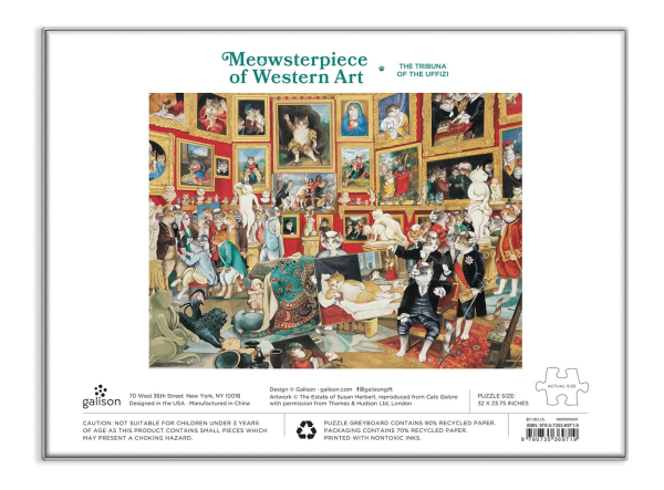 Toto puzzle s motívom obrazu Tribuna Uffizi v európskom štýle je skutočným mňaustrovským dielom. Puzzle s 1500 dielikmi s vtipnou mačacou interpretáciou obrazu od Johana Zoffanyho. Puzzle Galison sú zabalené v matných, pevných škatuliach, sú perfektné ako darček. Môžete ju tiež použiť ako úložný priestor. V balení tiež obrázok plne zostaveného puzzle ako predloha.Hlavné vlastnosti: Obsahuje 1500 dielikovPrémiová kvalita puzzleJednotlivé dieliky do seba presne pasujúRozvíja logické myslenie a motoriku