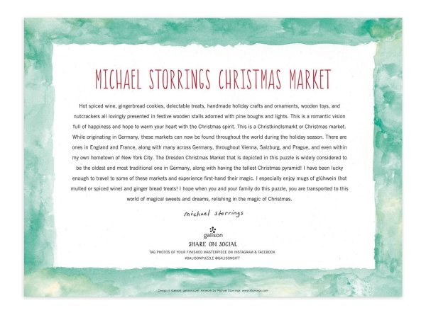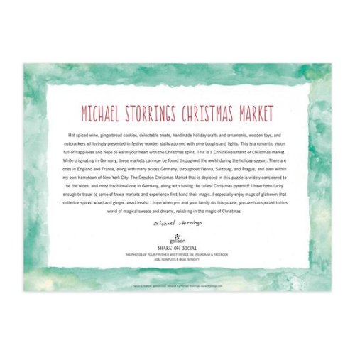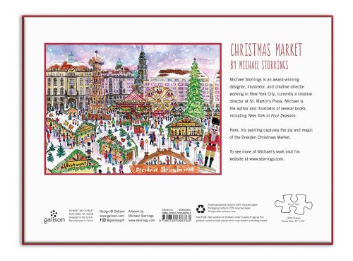 Vianoce v Drážďanoch 1000-dielne puzzle oživuje zhon a zhon zasnežených nemeckých Vianoc v Drážď anoch. Puzzle sú balené v pevných škatuliach s matným povrchom. Oceňovaný ilustrátor Michael Storrings zachytáva zvláštnu podstatu a kúzlo miest v rôznych ročných obdobiach . Hlavné vlastnosti: Obsahuje 1000 dielikovPotlačené netoxickými atramentmiPrémiová kvalita puzzleJednotlivé dieliky do seba presne pasujúRozvíja logické myslenie a motoriku