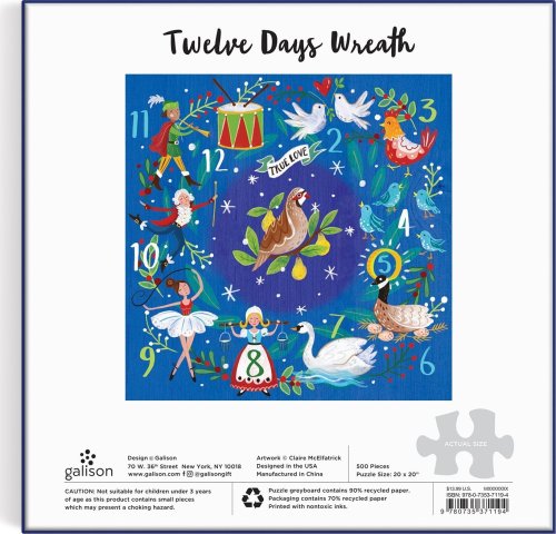 GALISON Štvorcové puzzle 12denný vianočný veniec 500 dielikov