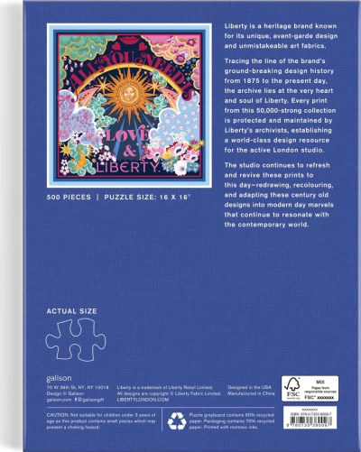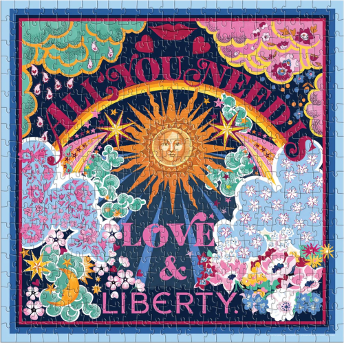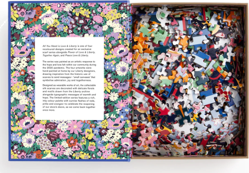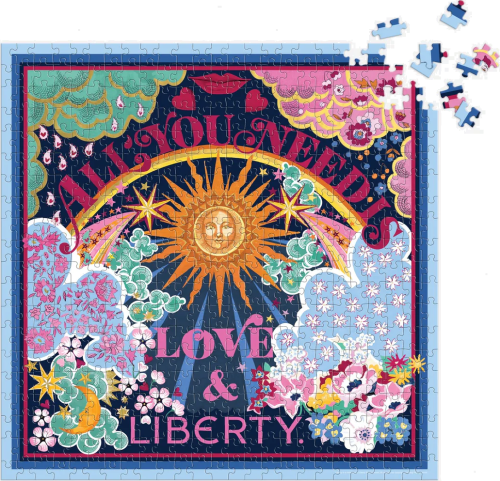Puzzle Liberty: Všetko, čo potrebuješ, je láska v obale v tvare knihy je obmenou klasického 500 dielneho puzzle.