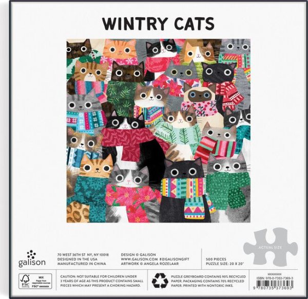 GALISON Štvorcové puzzle Zimné mačky 500 dielikov