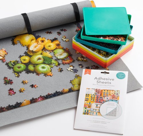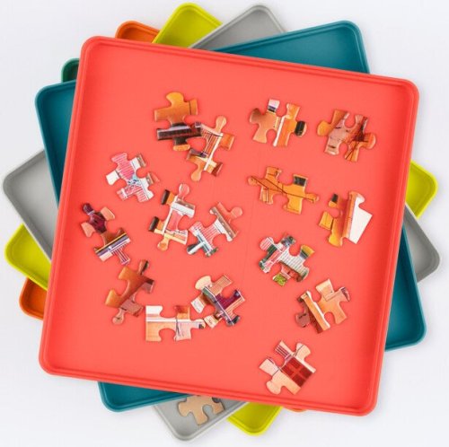 Triedič na puzzle - to je šesť praktických nádob v tvare tácky: - každý zásobník pojme cca 230 dielikov - prehľadné triedenie puzzle podľa tvaru alebo farieb - po skladaní je možné priehradky jednoducho naskladať na seba (stohovať) - triedič aj s dielikmi je možné uschovať späť do krabice, zaberajú menej miesta a dieliky sa nestratia - pomôže udržať poriadok Balenie obsahuje 6 ks rôznofarebných triedičov a veko na horný zásobník, rozmery: 19,5 x 19,5 x 1,2 cm. Triedič na puzzle GALISON má kapacitu cca 1350 dielikov, možno ho využiť aj pri skladaní väčších puzzle (pre roztriedenie časti dielikov).