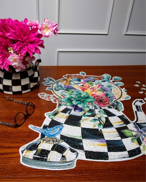 Tvarové puzzle ponúka väčšiu zábavu pri skladaní a po zlepení skvele doplní každý interiér. Dieliky sú špeciálne tvarované a po dokončení skladačky má zložené puzzle tvar čajovej kanvice s kvetinami. Súčasťou balenia je predloha skladaného motívu. Rozmer zloženého puzzle cca 51 x 64 cm