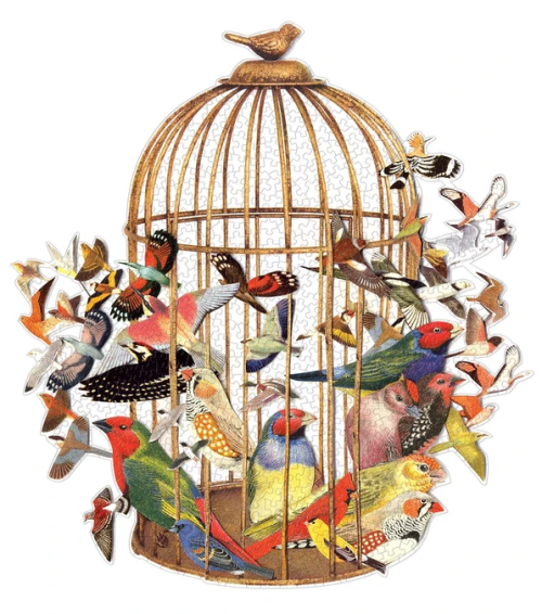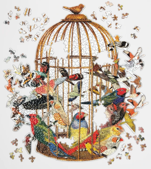 Tvarové puzzle ponúka väčšiu zábavu pri skladaní a po zlepení skvele doplní každý interiér. Dieliky sú špeciálne tvarované a po dokončení skladačky má zložené puzzle tvar vtáčej klietky. Rozmer zloženého puzzle cca 55 x 60 cm