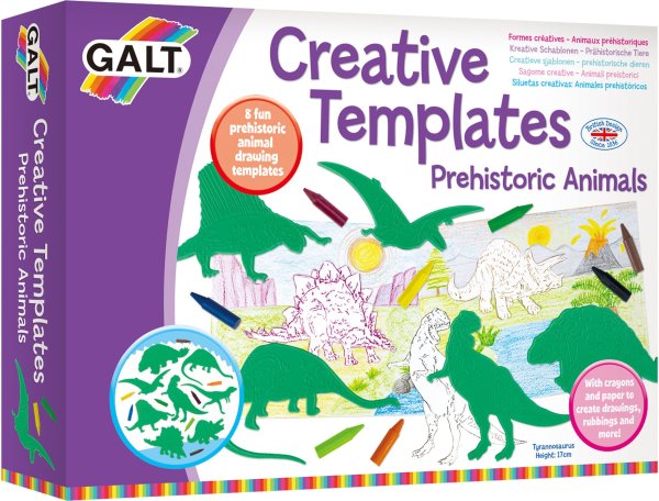 šablóny obsahujú realistické tvary dinosaurov ktoré deti môžu ľahko obkresľovať a farbiť, rôzne techniky: perfektné pre techniku trenia voskovkami, obkresľovanie a následné vyfarbovanie, postupne môžu deti prechádzať na zložitejšie kresby, koláže a blokovú tlač, výtvarné možnosti: s použitím vlastných farieb je možné obrázky prenášať na papier alebo textil, deťmi úžasné umelecké diela plné fantázie a zábavy s týmto kreatívnym setom, ideálny pre malých umelcov a milovníkov dinosaurov.
