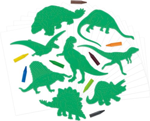 šablóny obsahujú realistické tvary dinosaurov ktoré deti môžu ľahko obkresľovať a farbiť, rôzne techniky: perfektné pre techniku trenia voskovkami, obkresľovanie a následné vyfarbovanie, postupne môžu deti prechádzať na zložitejšie kresby, koláže a blokovú tlač, výtvarné možnosti: s použitím vlastných farieb je možné obrázky prenášať na papier alebo textil, deťmi úžasné umelecké diela plné fantázie a zábavy s týmto kreatívnym setom, ideálny pre malých umelcov a milovníkov dinosaurov.