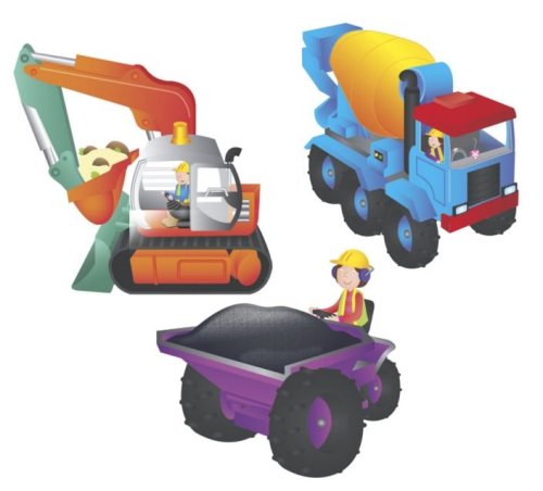 Puzzle obsahuje osem dielikov vozidiel stavby, ktoré môžu deti použiť ako šablónu pri kreslení.
