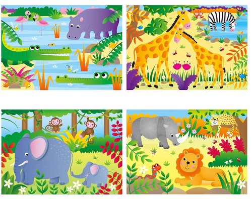 Puzzle v praktickom kufríku s progresívnymi dielikmi. Balenie obsahuje štyri odlišné obrázky s motívom divokých zvierat, vždy s iným počtom dielikov. Skladanie puzzle napomáha rozvoju logického myslenia a precvičovania trpezlivosti. Vhodné pre deti už od 3 rokov. Dodávané v kartóne s praktickým plastovým uchom pre ľahké prenášanie. Rozmer zloženého puzzle cca 21 x 15 cm