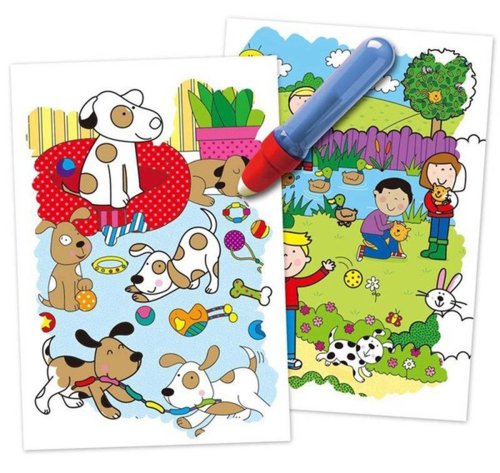 Kúzelné maľovanie vodou zabaví aj tých najmenších výtvarníkov. Potrebujete iba vodu. Vďaka obrázkom potiahnutým špeciálnou vrstvou, ktorá po navlhčení zmizne, vykúzlite rozmanité obrázky, ktoré žiaria všetkými farbami. Akonáhle obrázok uschne (za niekoľko minút), opäť sa pokryje pôvodnou farbou - môžete tak maľovať stále znova a znova...