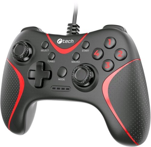 Gamepad C-TECH THEON Vám ponúkne ešte lepšie herné zážitky. 15 tlačidiel, dva analógové joysticky, osemsmerný ovládač a 2 vibračné motorky. Znie to ako štandard? Budete veľmi milo prekvapení. THEON má unikátny dizajn, vďaka ktorému ponúkne niečo, čo u konkurencie nenájdete: naspodku gamepadu ďalšie 2 programovateľné makro tlačidlá. Priamo z gamepadu im môžete pomocou funkcie makro priradiť sekvenciu stlačenia niekoľkých klávesov.