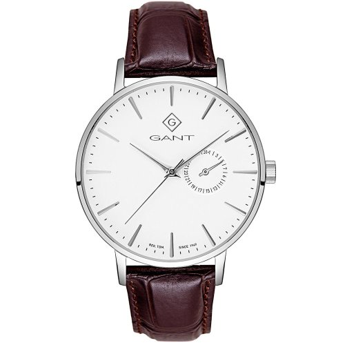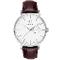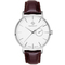 Pánske náramkové hodinky Napájanie z batérie Strojček MIYOTA 6P26 Priemer púzdra 41,5 mm Púzdro v tvare kruhu Oceľové púzdro Strieborná farba púzdra Kožený ťah Hnedá farba ťahu Ručičkový ciferník Biela farba ciferníka Ciferník s dvanástimi Dátum