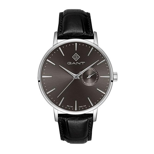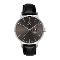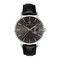 Pánske náramkové hodinky Napájanie z batérie Strojček MIYOTA 6P26 Priemer puzdra 41,5 mm Puzdro v tvare kruhu Oceľové puzdro Strieborná farba púzdra Kožený ťah ČIERNE farba ťahu Ručičkový ciferník Šedá farba ciferníka Ciferník s dvanástimi Dátum