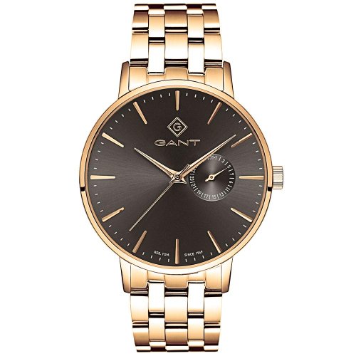 Pánske náramkové hodinky Napájanie z batérie Strojček MIYOTA 6P26 Priemer puzdra 41,5 mm Puzdro v tvare kruhu Oceľové puzdro Zlatavá farba púzdra Oceľový ťah Zlatavá farba ťahu Ručičkový ciferník Šedá farba ciferníka Ciferník s dvanástimi Dátum