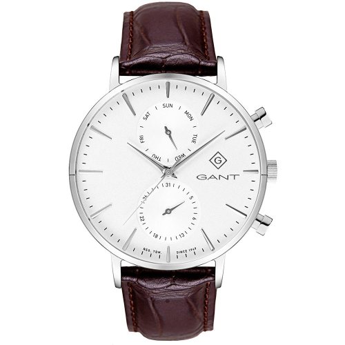 Pánske náramkové hodinky Napájanie z batérie Strojček SEIKO VX9PE Priemer púzdra 43,5 mm Púzdro v tvare kruhu Oceľové púzdro Strieborná farba púzdra Kožený ťah Hnedá farba ťahu Ručičkový ciferník Biela farba ciferníka ciferník s dvanástimi indexmi Materiál Dátum