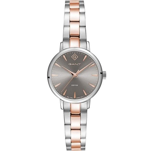 Dámske náramkové hodinky Napájanie z batérie Strojček MIYOTA GL30 Priemer puzdra 28,0 mm Puzdro v tvare kruhu Oceľové puzdro Strieborná farba puzdra Oceľový ťah Strieborná / zlatá farba ťahu Ručičkový ciferník Šedá farba ciferníka Ciferník s dva a umývanie