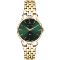 Dámske náramkové hodinky Napájanie z batérie Strojček MIYOTA GL20 Priemer puzdra 32,0 mm Puzdro v tvare kruhu Oceľové puzdro Zlatavá farba puzdra Oceľový ťah Zlatavá farba ťahu Ručičkový ciferník Zelená farba ciferníka Ciferník s dvanástimi index