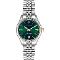 Dámske náramkové hodinky Napájanie z batérie Strojček 2115 Priemer puzdra 34,0 mm Púzdro v tvare kruhu Oceľové puzdro Strieborná farba púzdra Oceľový ťah Strieborná farba ťahu Ručičkový ciferník Zelená farba ciferníka Ciferník s dvanástimi indexmi Materiál spŕch