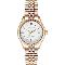 Dámske náramkové hodinky Napájanie z batérie Strojček 2115 Priemer puzdra 34,0 mm Puzdro v tvare kruhu Oceľové puzdro Zlatavá farba púzdra Oceľový ťah Zlatavá farba ťahu Ručičkový ciferník Biela farba ciferníka Ciferník s dvanástimi indexmi Materiál