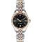 Dámske náramkové hodinky Napájanie z batérie Strojček 2115 Priemer puzdra 34,0 mm Puzdro v tvare kruhu Oceľové puzdro Strieborná/zlatá farba puzdra Oceľový ťah Strieborná/zlatá farba ťahu Ručičkový ciferník Čierna farba ciferníka Ciferník s dva sprchovanie a umývanie Dátum
