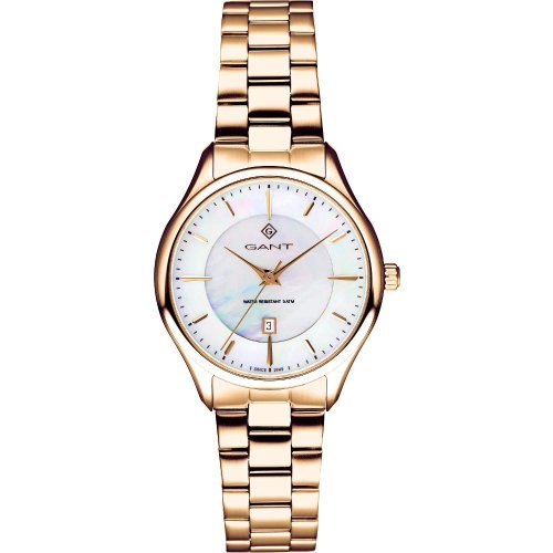 Dámske náramkové hodinky Napájanie z batérie Strojček GL10 Priemer puzdra 33,0 mm Puzdro v tvare kruhu Oceľové puzdro Ružové zlato farba puzdra Oceľový ťah Ružové zlato farba ťahu Ručičkový ciferník Strieborná farba ciferníka Ciferník s dvanástimi indexmi Materiál umývanie Dátum