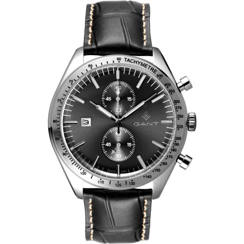 Pánske náramkové hodinky Napájanie z batérie Strojček YM91 Priemer puzdra 44,5 mm Puzdro v tvare kruhu Oceľové puzdro Strieborná farba puzdra Kožený ťah ČIERNE farba ťahu Ručičkový ciferník Šedá farba ciferníku Ciferník s dvanástimi indexmi Materiál skla