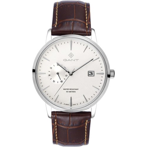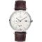 Pánske náramkové hodinky Napájanie z batérie Strojček MIYOTA JP27 Priemer púzdra 43,0 mm Púzdro v tvare kruhu Oceľové púzdro Strieborná farba púzdra Kožený ťah Hnedá farba ťahu Ručičkový ciferník Biela farba ciferníka Ciferník s dvanástimi index Dátum