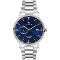Pánske náramkové hodinky Napájanie z batérie Strojček MIYOTA JP27 Priemer puzdra 43,0 mm Puzdro v tvare kruhu Oceľové puzdro Strieborná farba púzdra Oceľový ťah Strieborná farba ťahu Ručičkový ciferník Modrá farba ciferníka Ciferník s dvanástimi index Dátum