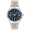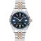 Dámske náramkové hodinky Napájanie z batérie Strojček MIYOTA 2115 Priemer puzdra 37,5 mm Puzdro v tvare kruhu Oceľové puzdro Strieborná farba puzdra Oceľový ťah Strieborná/zlatá farba ťahu Ručičkový ciferník Modrá farba ciferníka Ciferník s dva Dátum