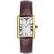 Dámske náramkové hodinky Napájanie z batérie Strojček SEIKO Y121 Priemer púzdra 24,0 mm Púzdro v tvare obdĺžnika Oceľové púzdro Zlatistá farba púzdra Kožený ťah Hnedá farba ťahu Ručičkový ciferník Strieborná farba ciferníka Ciferník s rímskymi číslami