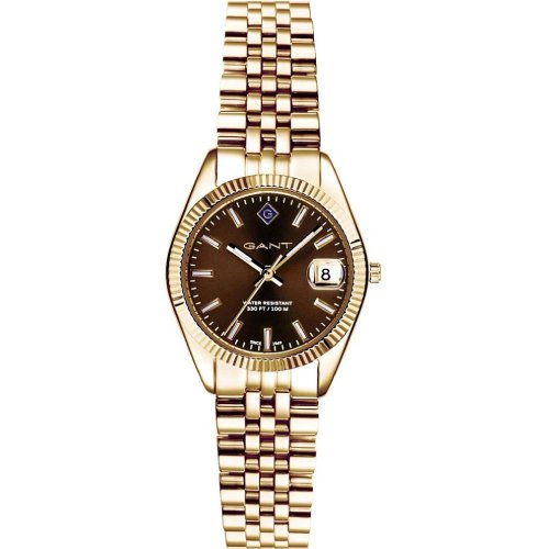 Dámske náramkové hodinky Napájanie z batérie Strojček MIYOTA GN12 Priemer puzdra 28,0 mm Puzdro v tvare kruhu Oceľové puzdro Zlatavá farba puzdra Oceľový ťah Zlatavá farba ťahu Ručičkový ciferník Hnedá …