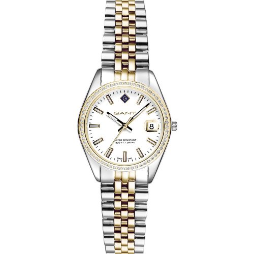 Dámske náramkové hodinky Napájanie z batérie Strojček MIYOTA GN12 Priemer puzdra 28,0 mm Puzdro v tvare kruhu Oceľové puzdro Strieborná/zlatá farba puzdra Oceľový ťah Strieborná/zlatá farba ťahu Ručičkový ciferník strieborná farba ciferníka ě počas plávania Dátum