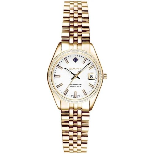 Dámske náramkové hodinky Napájanie z batérie Strojček MIYOTA GN12 Priemer puzdra 28,0 mm Puzdro v tvare kruhu Oceľové puzdro Zlatistá farba puzdra Oceľový ťah Zlatistá farba ťahu Ručičkový ciferník Biela farba proti ciferníku Ciferník s dvanástimi ciferník