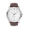 Pánske náramkové hodinky Napájanie z batérie Strojček MIYOTA GM12 Priemer puzdra 43,0 mm Puzdro v tvare kruhu Oceľové puzdro Strieborná farba púzdra Kožený ťah Hnedá farba ťahu Ručičkový ciferník Strieborná farba ciferníka Ciferník s dvanástimi ciferník