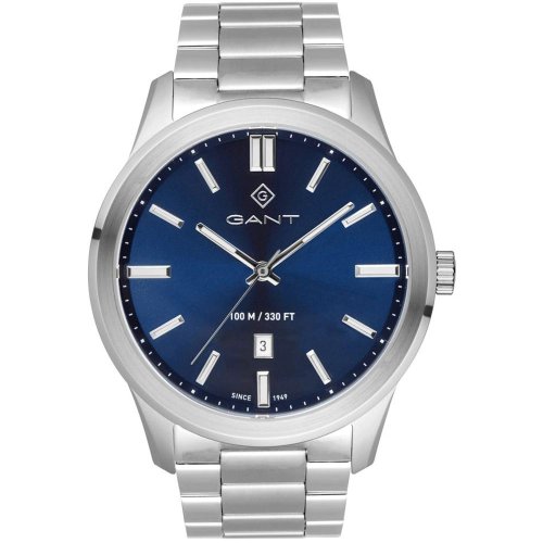Pánske náramkové hodinky Napájanie z batérie Strojček MIYOTA GM12 Priemer puzdra 43,0 mm Puzdro v tvare kruhu Oceľové puzdro Strieborná farba puzdra Oceľový ťah Strieborná farba ťahu Ručičkový ciferník Modrá farba ciferníka Ciferník s dvanástimi