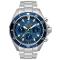 Pánske náramkové hodinky Napájanie z batérie Strojček SEIKO VX9J Priemer puzdra 45,0 mm Puzdro v tvare kruhu Oceľové puzdro Strieborná farba puzdra Oceľový ťah Strieborná farba ťahu Ručičkový ciferník Modrá farba ciferníka Ciferník s dvanástimi indexmi