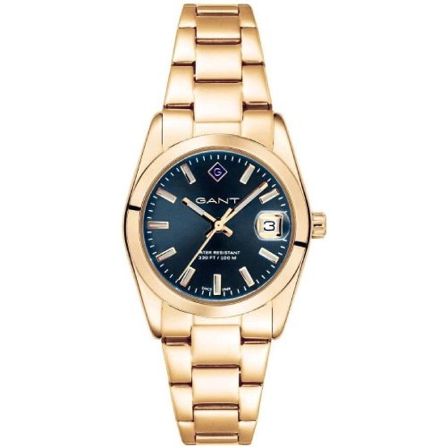 Dámske náramkové hodinky Napájanie z batérie Strojček MIYOTA GN12 Priemer puzdra 28,0 mm Puzdro v tvare kruhu Oceľové puzdro Zlatistá farba púzdra Oceľový ťah Zlatistá farba ťahu Ručičkový ciferník Modrá farba ciferníka Materiál skla