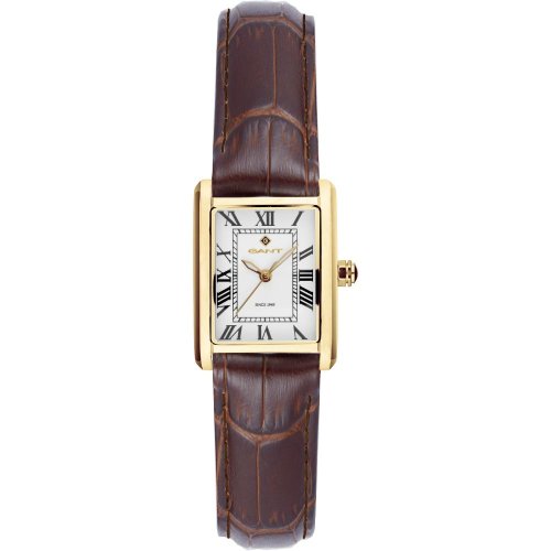 Dámske náramkové hodinky Napájanie z batérie Priemer puzdra 34,0 mm Puzdro v tvare obdĺžnika Oceľové puzdro Zlatistá farba puzdra Kožený ťah Hnedá farba ťahu Ručičkový ciferník Strieborná farba ciferníka Ciferník s rímskymi číslami Materiál skla - minerálne sklo
