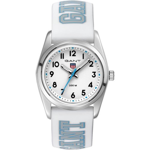 Detské náramkové hodinky Napájanie z batérie Strojček SEIKO Y121F Priemer puzdra 28,0 mm Puzdro v tvare kruhu Oceľové puzdro Strieborná farba puzdra Biela farba ťahu Ručičkový ciferník Biela farba ciferníka Ciferník s arabskými číslami Materiál skla
