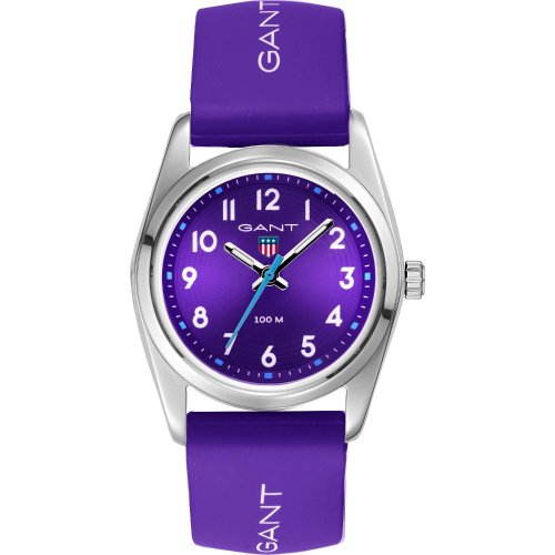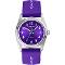 Detské náramkové hodinky Napájanie z batérie Strojček SEIKO Y121F Priemer puzdra 28,0 mm Puzdro v tvare kruhu Oceľové puzdro Strieborná farba puzdra Fialová farba ťahu Ručičkový ciferník Fialová farba ciferníku Ciferník s arabskými číslami Materiál skla