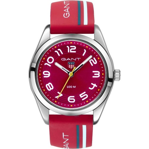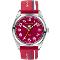 Detské náramkové hodinky Napájanie z batérie Strojček SEIKO Y121F Priemer puzdra 32,0 mm Puzdro v tvare kruhu Oceľové puzdro Strieborná farba puzdra Červená farba ťahu Ručičkový ciferník Červená farba ciferníka Ciferník s arabskými číslami Materiál počas skla - minerál