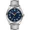 Detské náramkové hodinky Napájanie z batérie Strojček SEIKO Y121F Priemer puzdra 32,0 mm Puzdro v tvare kruhu Oceľové puzdro Strieborná farba puzdra Oceľový ťah Strieborná farba ťahu Ručičkový ciferník Modrá farba ciferníka Ciferník s arabskými číslami