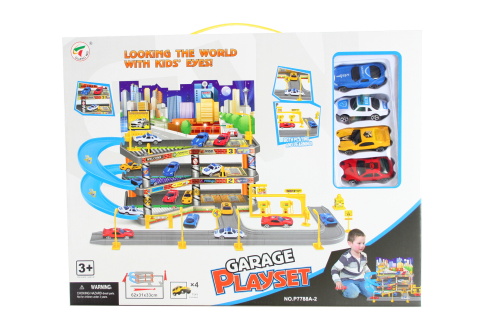 Garáž o veľkosti 62 x 31 x 33 cm. Súčasťou balenia sú 4 autíčka. Rozmer balenia cca 45,5 x 35 x 6 cm. Vek 3+
