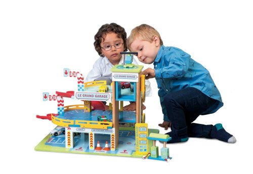 Hrá sa vaše dieťa rado s autíčkami? Zaobstarajte mu vlastnú drevenú 3poschodovú garáž Le Grand značky Le Toy Van. V balení nájde tiež auto, helikoptéru a čerpaciu stanicu . Navyše je hračka vybavená fungujúcim výťahom . Ten váš potomok ovláda posunutím smerom k streche alebo prízemiu. Dieťa vyvezie autíčko na poschodie a zvezie ho po 2 rampách späť dole.